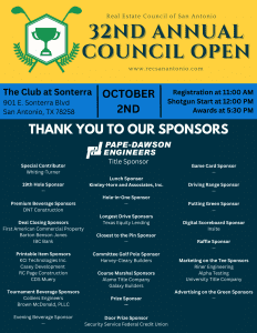 The 32nd Annual Council Open Tournament will take place on Monday, October 2nd at The Club at Sonterra.