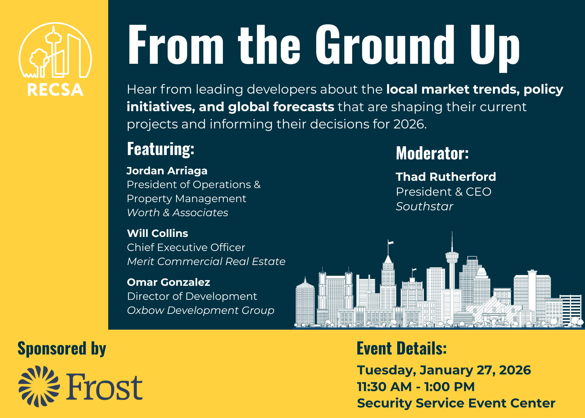 Security Service Event Center 15000 W Interstate 10, San Antonio, TX, United StatesREGISTER HERE Join us for an in-depth look at the projects shaping the face of San Antonio in 2026. Hear from leading developers about the local market trends, policy initiatives, and global forecasts that are shaping their current projects and informing their decisions for the coming year. Event Details: Tuesday, January 27, 2026 Event […]
